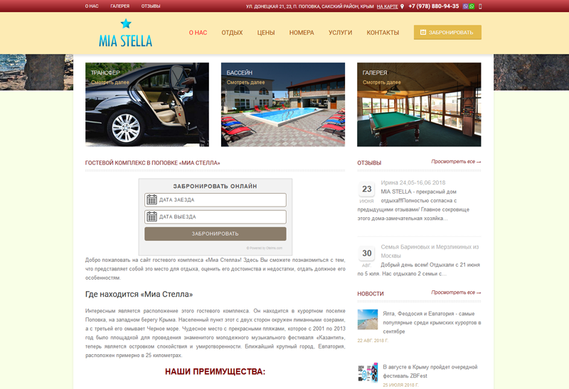 Отдых в Поповке частный сектор в лице MIA Stella может предложить вам 4 комфортабельных дома с современными комнатами. Удобная новая мебель, телевизор, холодильник, кондиционер, санузел, доступ к Wi-Fi.